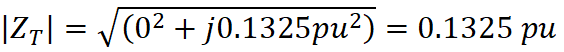 • Transformer 2: Already rated at 100 MVA, so its impedance remains unchanged at 0.08 pu.