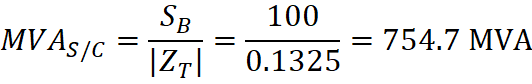 To calculate the balanced fault apparent power (MVAS/C) we need to know the magnitude of the total impedance to the point of fault.