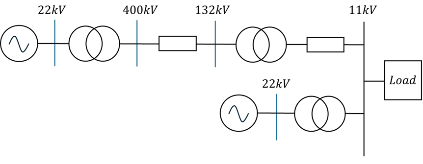 Per-unit (pu) analysis is a standard normalisation method in power system engineering that simplifies calculations across networks operating at multiple voltage levels. It works by expressing electrical quantities, such as voltage (V), current (I), apparent power (S), and impedance (Z), as ratios of selected base values. This approach allows engineers to compare equipment ratings, combine impedances, and perform system studies without repeatedly converting between different voltage levels. In essence, per-unit analysis transforms a complex, multi-voltage network into a unified and more manageable model, making calculations straightforward and consistent. For example, it converts the following detailed network into a simplified equivalent representation: