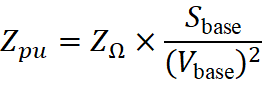 For these assets, impedance is usually specified in ohms. To express this impedance in per-unit terms on the chosen base, use: